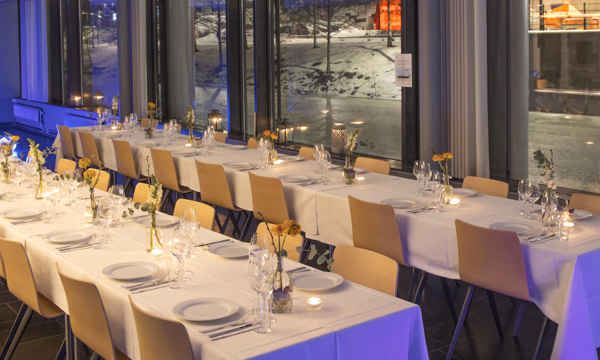 Priser fra 1250,- per gjest, inkludert mat, servitører og dekketøy. Leie av lokalet og drikke kommer i tillegg.