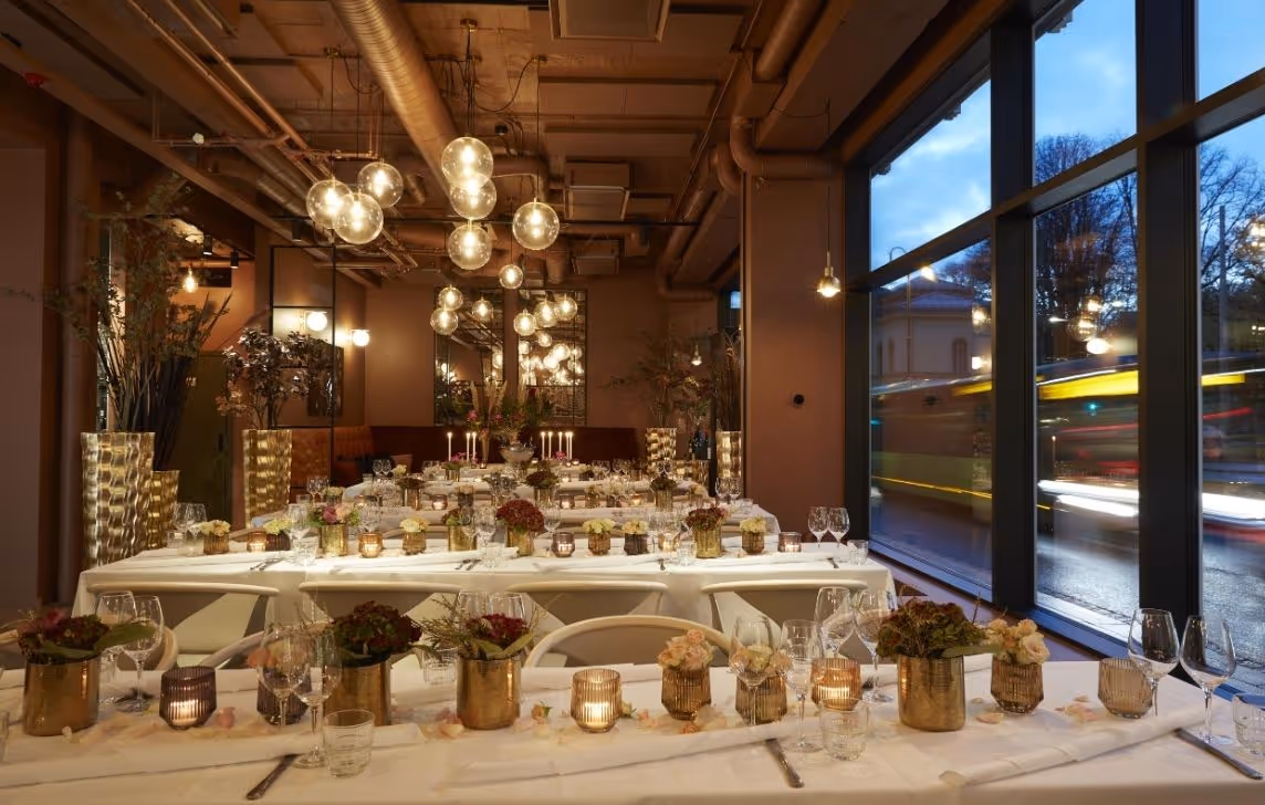 Elegant lokale med høyt under taket, store vinduer og stilren atmosfære. Perfekt for julebord, bryllup og formelle middager – midt i hjertet av Oslo.