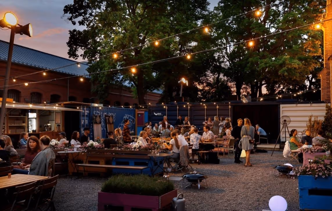 Grønn oase ved Kulturkirken Jakob — åpen bakgård med grill, uteservering og plass til 200–500 gjester. Ideelt for sommerfestivaler og uformelle fester.